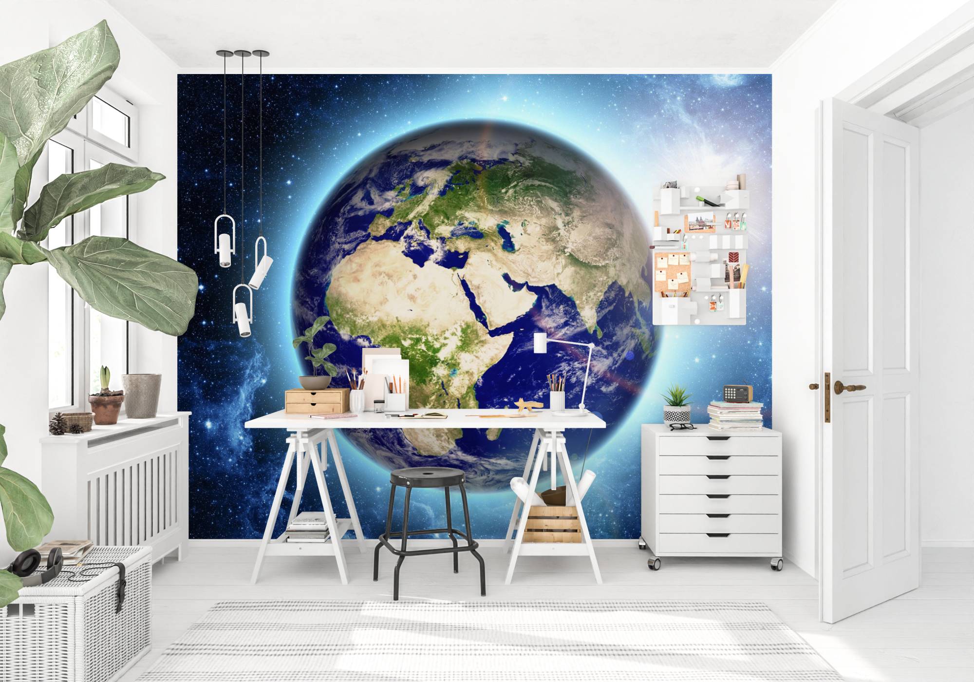 Tapeta Kosmos Planeta Ziemia wprowadza do wnętrza magię nocnego nieba i poczucie wielkości przestrzeni. Realistyczne planety i subtelne świetlne refleksy układają się blisko siebie, tworząc efekt zbliżenia planet, który fascynuje i uspokaja jednocześnie. Intensywna tapeta z łatwością staje się głównym punktem aranżacji, podkreślając nowoczesny lub kosmiczny charakter wnętrza. Idealna do :