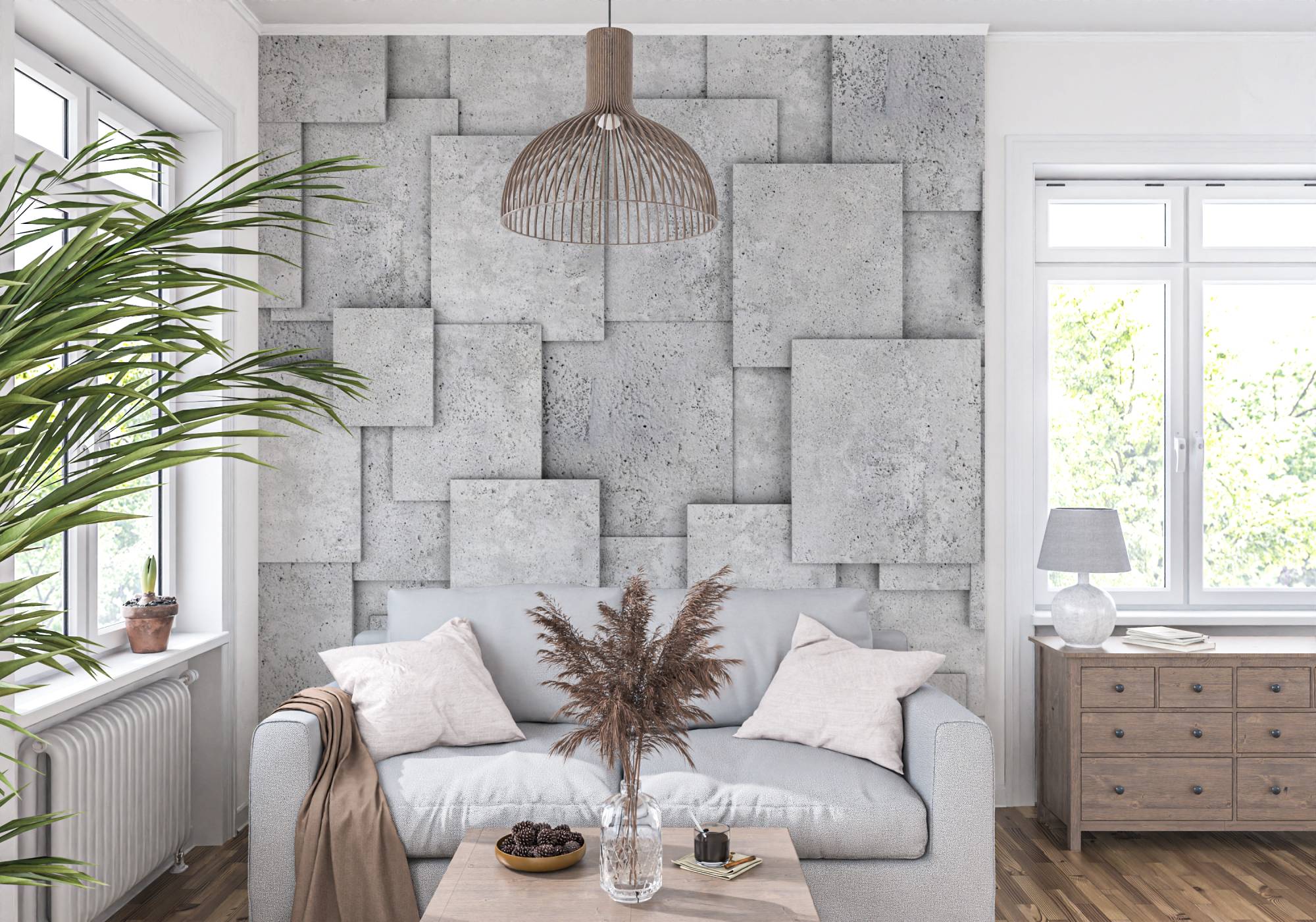 Ta fototapeta 3D betonowe bloki tworzy wyrazisty efekt głębi, który optycznie powiększa wnętrze i dodaje mu nowoczesnego charakteru. Surowa kompozycja z delikatnymi akcentami sprawia, że świetnie wpisuje się w salony, biura i przestrzenie w stylu minimalistycznym.
