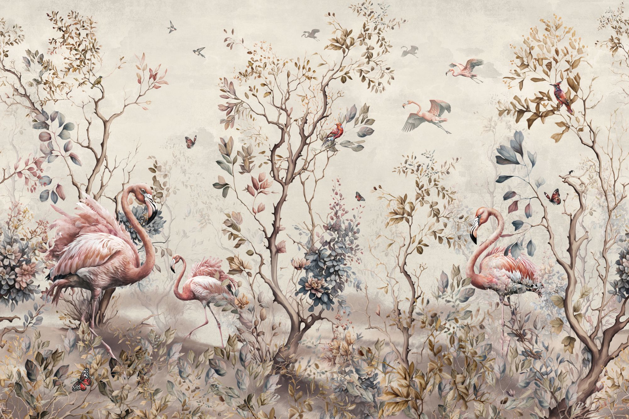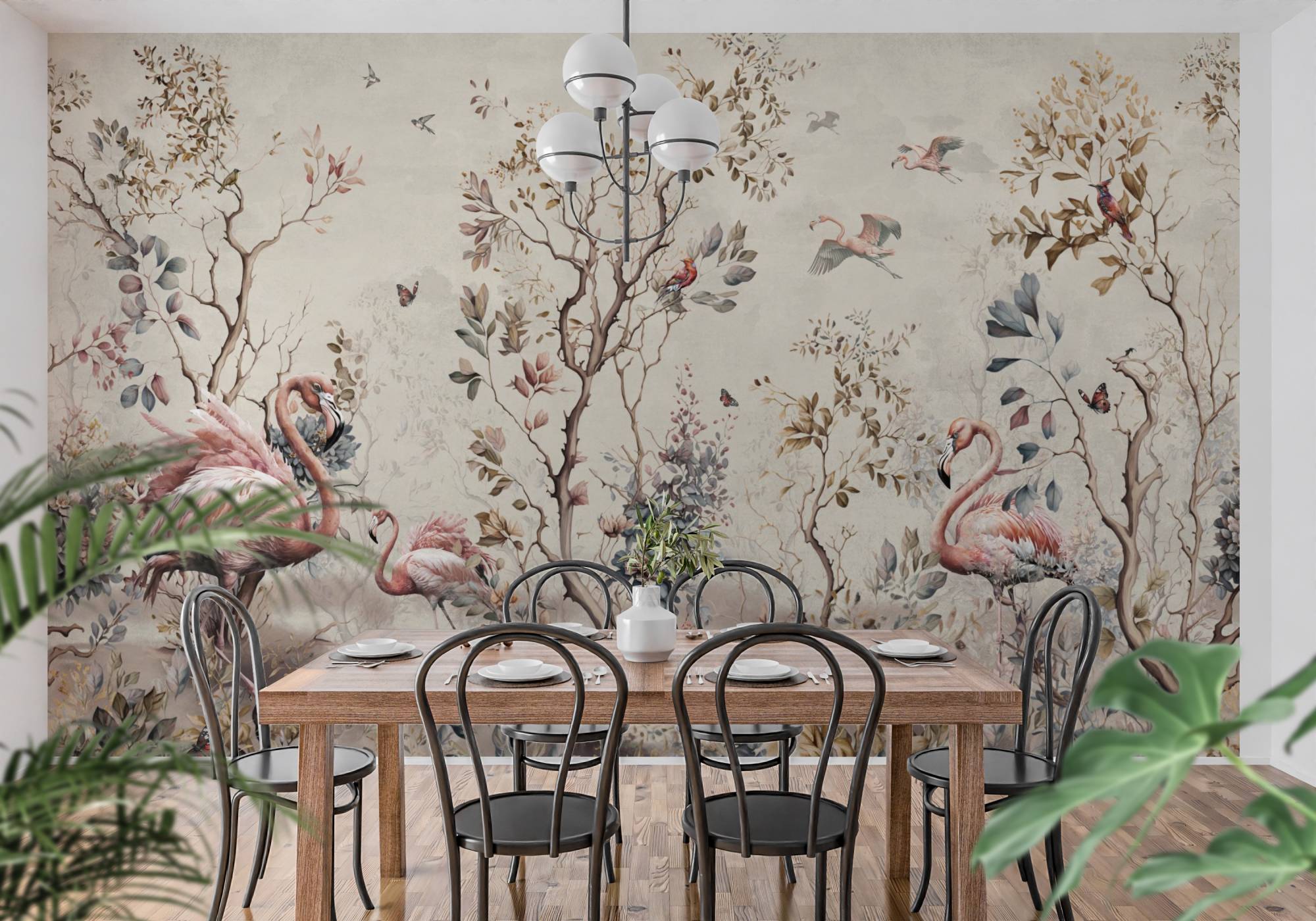 Tapeta do salonu chinoiserie flamingi vintage 5491