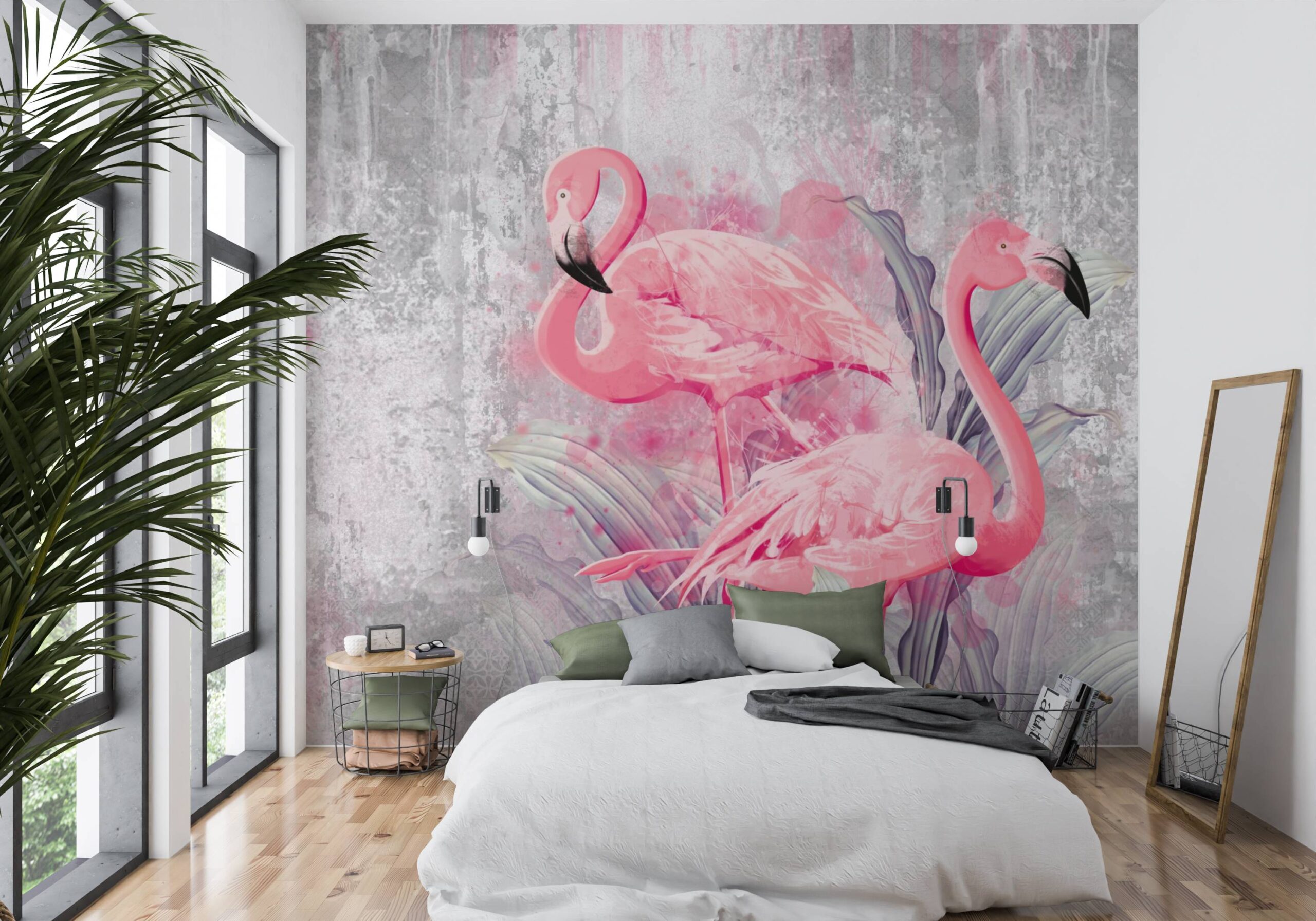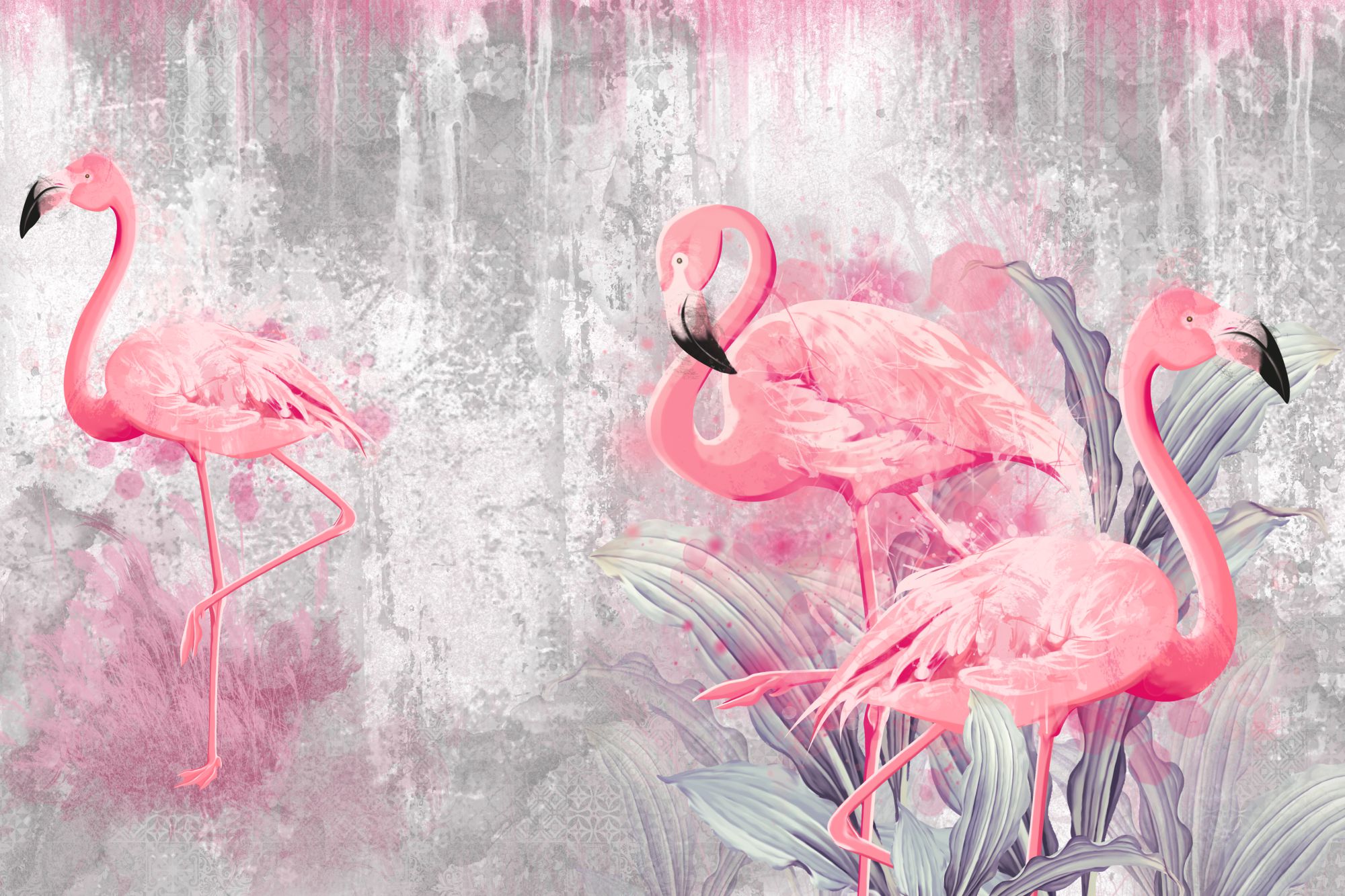 Tapeta do salonu Różowe Flamingi na betonowym tle 5147
