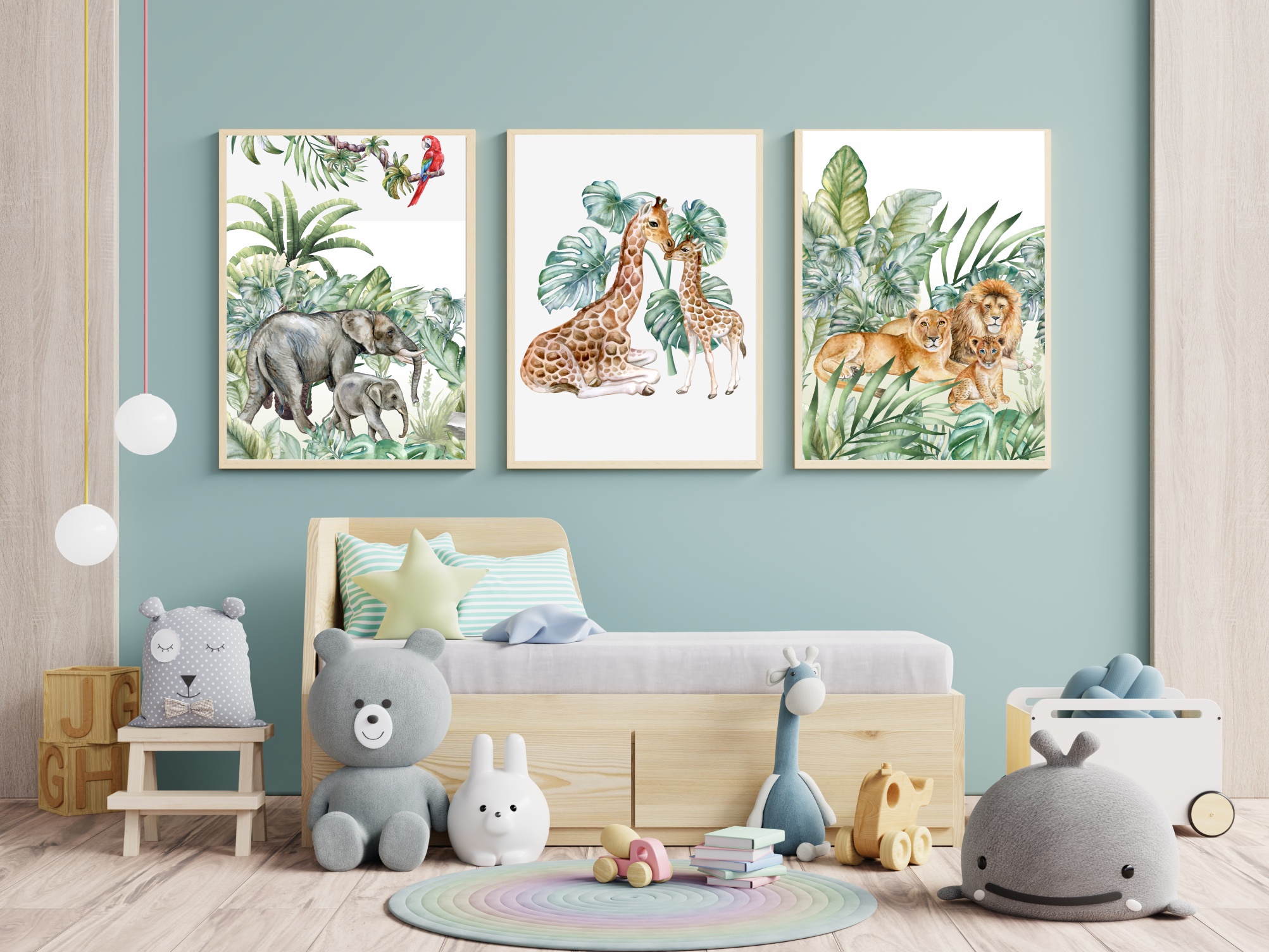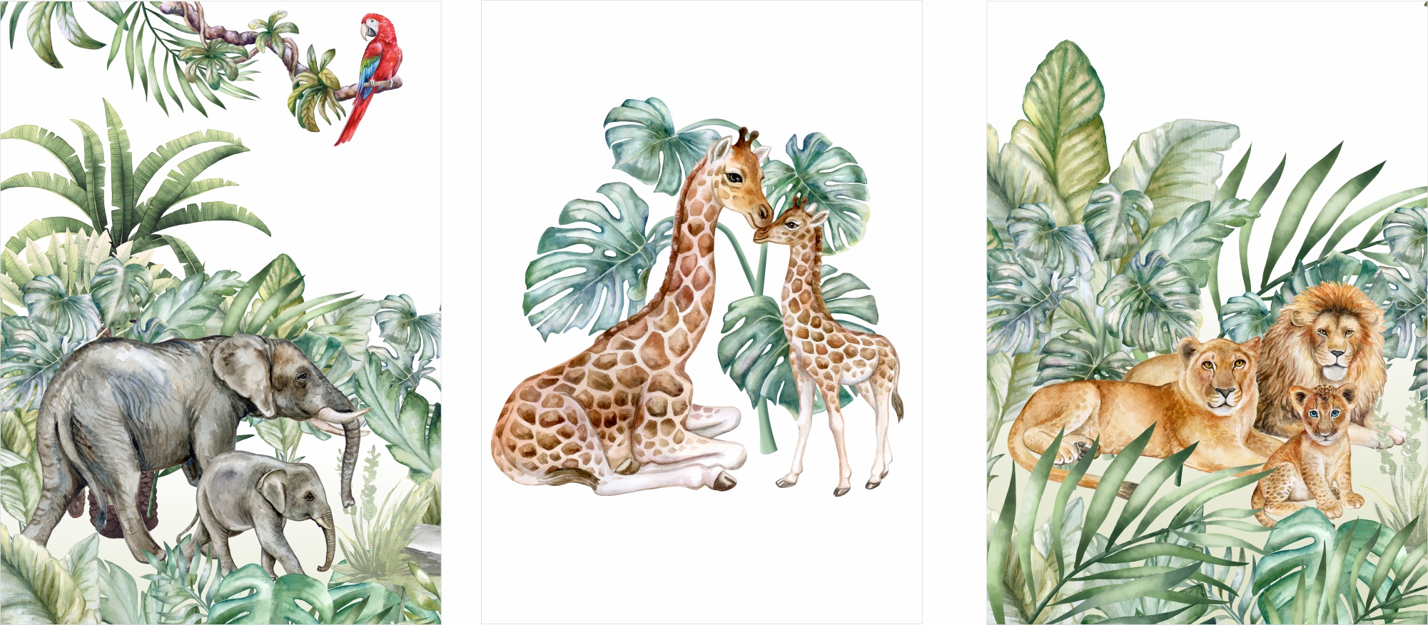 Zestaw 3 plakatów dla dzieci zwierzęta safari MP038