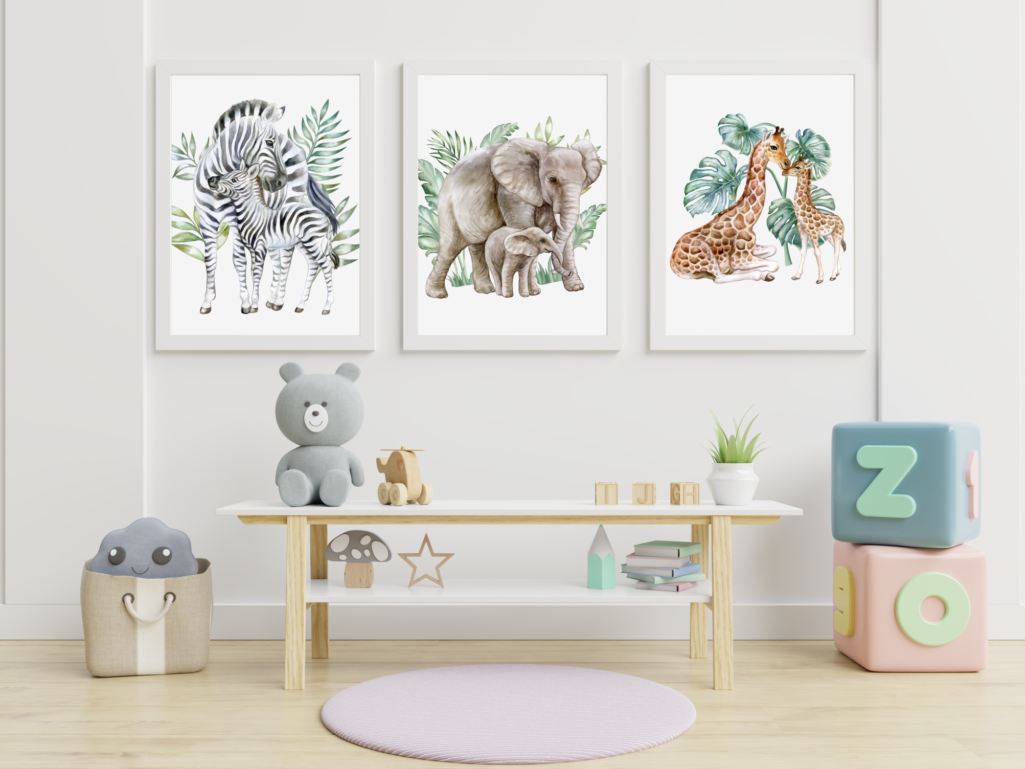 Zestaw 3 plakatów dla dzieci zwierzęta safari MP041