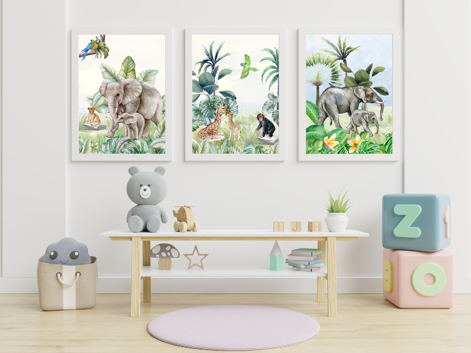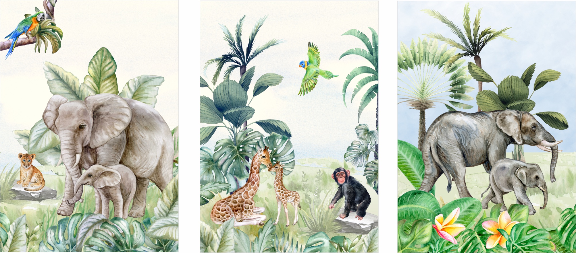 Zestaw 3 plakatów dla dzieci zwierzęta safari MP043